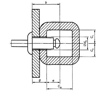 b - слепая длина; Сa - осевой зазор со «слепой» стороны; Сr - радиальный зазор со «слепой» стороны; dh - диаметр отверстия; е - выступающая длина «слепой» стороны; g- толщина пакета Рисунок 18 2.6.2.1 отверстие для заклепки (assembly hole): Отверстие в соединяемых деталях для установки заклепки. 2.6.2.2 толщина пакета (grip length): Общая толщина соединяемых деталей. 2.6.2.3 разброс толщины пакета (grip range): Минимальная и максимальная суммарная толщина соединяемых деталей, которые могут быть качественно соединены заклепкой данной номинальной длины. 2.6.2.4 выступающая длина «слепой» стороны (blind side protrusion): Разница между максимальной «слепой» длиной и минимальной толщиной пакета. 2.6.2.5 осевой зазор со «слепой» стороны (blind side axial clearence): Минимальное расстояние между внутренней поверхностью скрепляемой детали и поверхностью любого компонента или детали, находящиеся напротив головки сердечника или конца заклепки. Примечание - Для правильной установки и фиксации заклепки осевой зазор должен быть больше, чем выступ слепой стороны. 2.6.2.6 радиальный зазор со «слепой» стороны (blind side radial clearence): Расстояние от оси заклепки до любой части скрепляемых деталей, измеренное под прямым углом к оси заклепки. Примечание - Для правильной установки и фиксации заклепки радиальный зазор должен быть больше, чем радиус головки «слепой» заклепки. 2.6.2.7 доступность инструменту (tool clearence): Минимальное пространство со стороны установки заклепки, необходимое для работы с установочным инструментом и правильной установки заклепки. 2.7 Установка заклепок и установочный инструмент2.7.1 установка заклепки (setting): Вставление заклепки в отверстия соединяемых деталей и вытягивание или запрессовка сердечника для стягивания и фиксирования соединения. 2.7.1.1 установочный инструмент (setting tool): Устройство, предназначенное для установки заклепок. Примечание - Установочный инструмент может быть ручным, пневматическим, гидравлическим, электрическим или с комбинированным приводом. 2.7.1.2 наконечник инструмента (nose assembly): Часть установочного инструмента, состоящая из зажима и тянущего механизма. 2.7.1.3 улавливатель сердечников (mandrel catcher): Часть установочного инструмента, предназначенная для улавливания сердечников, оторванных или вытянутых при установке заклепок. 2.7.1.4 система сбора сердечников (mandrel collection system): Часть установочного инструмента, в которую помещаются сердечники, оторванные или вытянутые при установке заклепок. 2.7.2 чистовая обработка (dressing): Последующие операции для удаления частей сердечника, выступающих над головкой заклепки. Ключевые слова: «слепая» заклепка, термины и определения, размеры |
