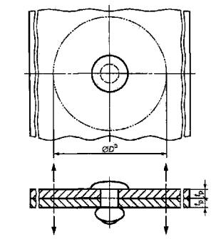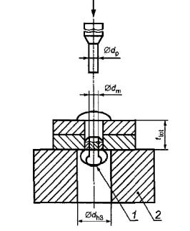 испытуемой заклепкой 3.2.3 Толщина испытательных пластин/вставок и диаметры отверстий для испытаний Для всех испытательных устройств толщины пластин или вставок для испытаний должны соответствовать данным таблицы 1, а диаметры отверстий для испытаний должны соответствовать указанным в таблице 2. Таблица 1 - Толщина испытательных пластин/вставок для различных типов «слепых» заклепок