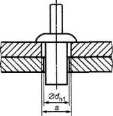6 Качество исполненияНа заклепках не должно быть заусенцев и опасных дефектов, головки и сердечники должны быть правильной формы. После установки на заклепках не должно быть признаков растрескивания при осмотре с пятикратным увеличением. 7 Испытания при приемкеЕсли нет других указаний, то испытания при приемке проводят в соответствии с ИСО 3269. 8 ОбозначениеПример условного обозначения «слепой» заклепки с закрытым концом, вытяжным сердечником и выступающей головкой, номинальным диаметром 4 мм и номинальной длиной 12,5 мм с корпусом из алюминиевого сплава АIА и стальным сердечником St: Заклепка 4´12,5 - АIА/ St ГОСТ Р ИСО 15973-2005 Приложение А(справочное)Расчетные формулы«Слепые» заклепки должны соответствовать следующим расчетным формулам и допускам: А.1 Диаметр тела заклепки Максимальный диаметр