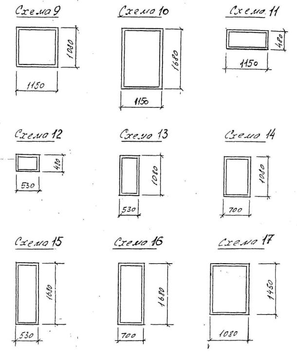 Значения коэффициента Ψпк для оконных переплетов с глухим остеклением, показанных на схеме 7, рис. 7 Таблица 9