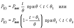 Эти данные следует определять по методикам, имеющимся в строительных институтах, проектирующих взрывоопасные объекты, а также по литературным источникам [18, 20, 30, 33, 39,40 и др.]. 4.3.5. При расчете конструкций действительные графики изменения взрывного давления при детонационных и дефлаграционных взрывах могут быть заменены графиками изменения динамических нагрузок во времени. Наиболее характерные типы таких нагрузок приведены на рис. 11. Изменения динамических нагрузок во времени в фазе сжатия могут быть одинаковы для внутреннего и внешнего взрывов. Динамические нагрузки всех типов состоят из отдельных участков с линейными законами изменения во времени. Тип 1 динамических нагрузок при внешних взрывах характерен для покрытий зданий и сооружений и может быть принят для их фронтальных элементов, возвышающихся над уровнем земли. Тип 2 динамических нагрузок при внешних взрывах характерен, например, для тыльных элементов конструкций, возвышающихся над уровнем земли, и для внутренних дефлаграционных взрывов. Законы изменения во времени динамических нагрузок рассмотрены в главе 5 и приведены в документе [30]. 4.3.6. Степень разрушения здания не определяется однозначно значениями Рф, θ, θ1 или θ2 (рис. 11), а зависит от прочности составляющих здание конструкций, их взаимного расположения, ориентации здания и т.д. Поэтому степень разрушения является вероятностной величиной, и для ее определения следует воспользоваться или прямыми расчетами (см. главу 5), или существующими упрощенными методиками. Прямые расчета характерны для определения степени разрушения отдельных объектов. Аналогия с детонационными взрывами позволяет рассматривать в качестве основы при оценке состояния зданий и сооружений на территории взрывоопасного предприятия и вокруг него методики прогнозирования инженерной обстановки в очагах поражения, используемые в гражданской обороне (ГО). 4.3.7. В качестве первого приближения в методиках ГО учитывается только избыточное давление ΔРф. Далее на основе описательных представлений определяется понятие слабого, среднего, сильного или полного разрушения. Для каждой из степеней разрушений вероятность ее наступления (как функции от ΔРф) задается нормальным законом. Чтобы задать эти законы, необходимо определить математические ожидания Р0,5, которые имеют смысл давления, при котором данная степень разрушения наступает с вероятностью 50 % и дисперсию σu, характеризующую физическую устойчивость различных типов зданий. В работе [45] приведены графики функций вероятности разрушения одно- и двухэтажных кирпичных зданий, полученные на основе экспериментальных данных. Там же указана приближенная формула потерь на объекте