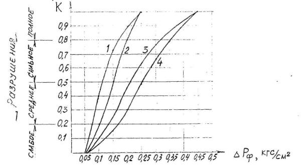 Значения предельных избыточных давлений ΔРпр, соответствующих различным степеням разрушений зданий Таблица 41
