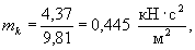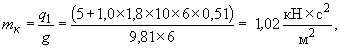 где l0 - расчётный пролёт конструкции; В - изгибная жесткость; mк - погонная масса конструкций, определяемая по формуле