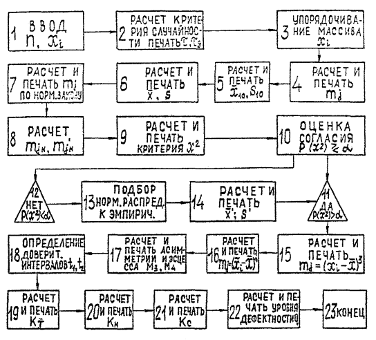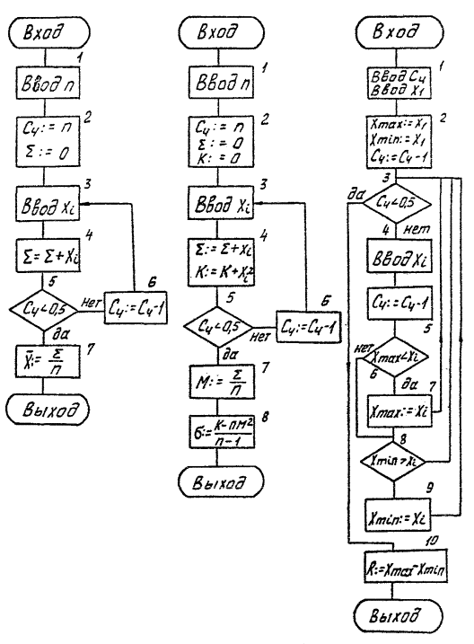 Блок-схема алгоритма расчета статистических характеристик на микро-ЭВМ