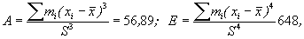 т.е. распределение имеет правостороннюю (положительную) ассимметрию и плотность распределения более плосковершинно, чем плотность нормального распределения.