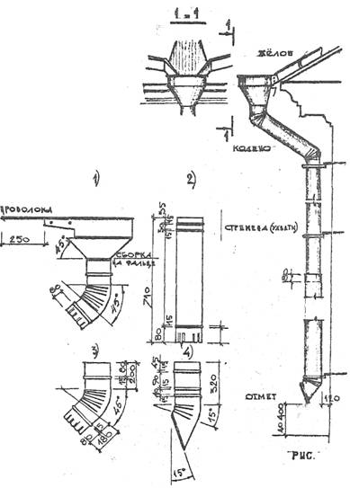 более Установку водосточных труб производят строго вертикально на расстоянии не менее Отводы от воронок и выпускные колена (отметы) выполняют из коротких звеньев труб, соединенных под углом 112º или 136º; выходные отверстия отметов должны находиться над поверхностью земли не выше Примыкание кровли к стенам и брандмауэрам выполняют с соблюдением следующих условий. Край рядового покрытия заводят в борозду, в кладке стены. Глубина борозды должна быть не менее Примыкание кровли к дымовым трубам осуществляется следующим