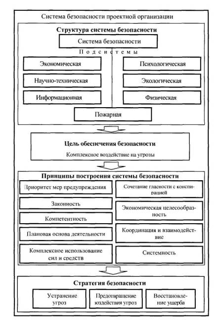 Рис. 2. Функционирование системы безопасности проектной организации В нашей стране интеллектуальная собственность регулируется соответствующими законодательными актами. Основные отношения по вопросам собственности устанавливает Гражданский кодекс Российской Федерации [2]. Закон Российской Федерации «Об авторском праве и смежных правах» [3], закон Российской Федерации «О товарных знаках, знаках обслуживания и наименованиях мест происхождения» [4] и Патентный закон Российской Федерации [5] регулируют отдельные вопросы авторского и патентного права. Частично вопросы авторского права затронуты в Федеральном законе Российской Федерации «Об архитектурной деятельности в Российской Федерации» [6]. Интеллектуальная собственность является юридическим понятием, охватывающим авторское право, права, относящиеся к деятельности артистов, писателей, художников, патентное право, право на научные открытия, право на промышленные образцы, товарные знаки, географические обозначения (указания), защиту от недобросовестной конкуренции, а также все другие права, относящиеся к интеллектуальной деятельности в области производства, науки, литературы и искусства. Интеллектуальная собственность имеет две составляющие. С одной стороны, право быть автором, которое относится к категории личных неимущественных прав и служит удовлетворению амбиций автора, приносит ему моральные дивиденды, в нашем случае в виде осуществленных по его проектам зданий и сооружений или повторного использования этих проектов. С другой, исключительные имущественные права, представляемые авторам, которые предоставляются им национальными законодательствами на определенное время и на соответствующих условиях. Интеллектуальная собственность как компонент качества и цены товара, а, следовательно, его конкурентоспособности, сделала ее одним из определяющих элементов сравнительных преимуществ на рынке товаров и услуг. Права творцов - авторов, изобретателей приравняли к собственности лишь для того, чтобы признать их священными и неприкосновенными. Согласно предыдущей редакции Патентного закона не признавались патентоспособными изобретениями проекты и схемы планировки сооружений, зданий, территорий (п.3 статьи 4 [5]) и патентоспособными промышленными образцами решения объектов архитектуры (кроме малых архитектурных форм), промышленных, гидротехнических и других стационарных сооружений (п.2 статьи 6 [5]). Теперь с принятием новой редакции Патентного закона (Федеральный закон от 7 февраля 2003 г. № 22-ФЗ «О внесении изменений и дополнений в Патентный закон Российской Федерации» [8]) непатентоспособными изобретениями признаются решения, касающиеся только внешнего вида изделий и направленные на удовлетворение эстетических потребностей (п.2 статьи 4 [5]). Эта норма распространяется и на полезные модели. В свою очередь, проектная продукция является плодом архитектурной и инженерной деятельности. Поскольку архитектурная деятельность законом об основах культурной деятельности отнесена к творческой деятельности, то она не несет элементов изобретательства, и, следовательно, нормы Патентного закона, как мы видим, на нее не распространяются. В случаях и в порядке, установленных законодательством, за проектировщиком (физическим или юридическим лицом) признается исключитель