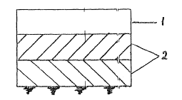 Рис.1. Усиление двухслойного жесткого покрытия асфальтобетоном: 1 - асфальтобетон; 2 - цементобетон Будем считать, что верхний асфальтобетонный слой такого покрытия нагружен сверху нагрузкой, распределенной по площади круга радиуса R и интенсивностью q. Граничные условия для такой трехслойной плиты (рис.2) записываются в виде: - на верхней граничной плоскости z = H