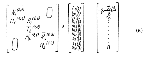 Функции Для третьего слоя плита функции A3(β), C3(β) выражаются через B3(β), D3(β). Таким образом мы получаем систему функциональных уравнений 10-го порядка относительно функций Ai(β),Bi(β),Ci(β),Di(β)(i = 1,2),B3(β), D3(β), которую приводам в матричной форме: