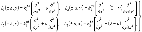 где K1 и К2 - коэффициенты, равные 0 или 1 в зависимости от рассматриваемой расчетной схемы покрытия. Так, например, если все коэффициенты KI и К2 равны единице, то граничные условия: