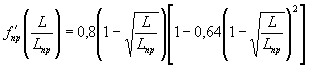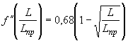 Рис.1. Распределение динамического воздействия самолета на ВПП при разбеге Участок пробега самолета после приземления (величина которого также изменяется в зависимости от класса самолета) характеризуется увеличением нагрузок, усугубляемым интенсивным торможением, нередко с использованием реверса. Исследуя изменение приложения нагрузки и скорости движения самолета в функции длины пробега из условия, что посадочная скорость самолета, как правило, составляет не более 80 % от скорости отрыва, а масса на 15 % меньше массы стартующего самолета (рис.2), можно получить формулу распределения воздействия самолета на покрытие как произведение скорости пробега на нагрузку: при . 0 ≤ L/Lпр ≤ 0,25. или при 0,25 ≤ L/Lпр ≤1,0. В качестве меры интенсивности воздействия самолета на поверхность ВПП примем произведение количества взлетно-посадочных операций, приходящихся на поперечное сечение покрытия, на воздействие самолета. При этом максималъное воздействие на покрытие будет равно 1,0. Тогда распределение интенсивности воздействия при разбеге можно описать выражением, полученным из произведения формул (1) и (3):
