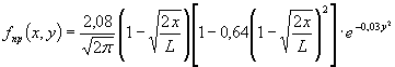 Рис.2 Распределение динамического воздействия самолета на ВПП при пробеге Геометрическая интерпретация такого распределения приведена на рис.3. Поступая аналогично предыдущему, из произведения выражений формул (1), (4) и (5) получим формулы распределения динамического воздействия самолетов для случая пробега: