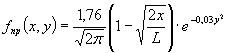 Изучение динамики посадки самолетов различных классов показывает, что около 98 % всех приземлений приходятся на половину длины ВПП и характеризуется нормальным распределением [4]. Формула такого распределения может быть представлена в виде: