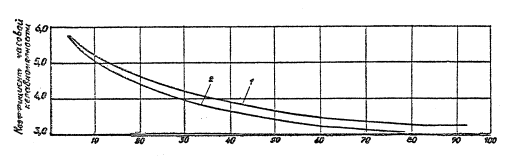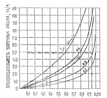 Формула (5) характеризует функциональную зависимость минимальной производительности уборочных машин от численного значения интенсивности выпадения осадков. С увеличением Р (i ≤ xк) повышается потребная производительность уборочных машин (см. рисунок), В качестве примера рассмотрим