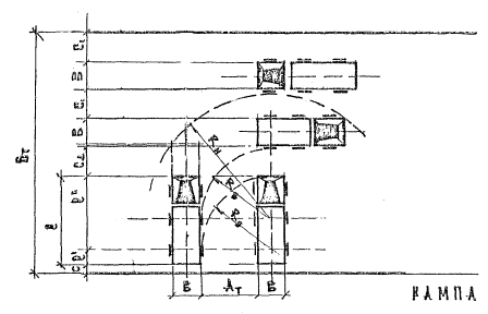 Рис.2. Схема торцевой расстановки и проездов автотранспорта у здания грузового склада Таблица 1
