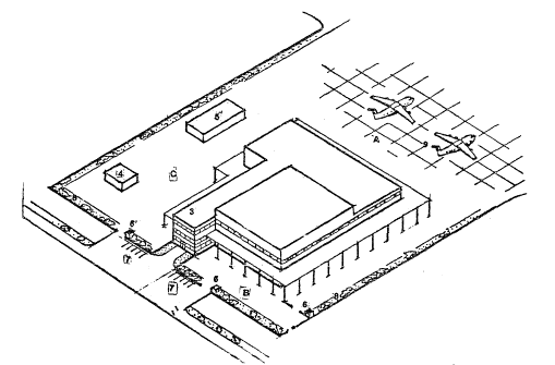 Рис.9. Планировочное решение зала-накопителя: в аэровокзале централизованного типа Лондон-Хитроу (аэровокзал № 3) Пример планировочного решения зала-накопителя, рассчитанного на обслуживание самолета типа Боинг-747, приведен на рис.9. Модульная структура обладает возможностью приспособления к обслуживанию самолетов различной пассажировместимости, которые в ближайшее десятилетие будут эксплуатироваться в аэропортах мира. Практически уже в настоящее время вопросы совместной эксплуатации этих типов самолетов в крупных аэропортах за рубежом решаются достаточно просто. Для обслуживания пассажиров и обработки багажа одного самолета повышенной вместимости типа Боинг-747 используются два или три модуля, каждый из которых предназначен для обслуживания самолета на 100 - 150 мест. Посадка пассажиров в самолеты с широким фюзеляжем с двумя проходами в пассажирском салоне производится, как правило, с двух бортов через несколько дверей с помощью телескопических трапов или перронных автобусов. В остальное время несколько модулей и оборудование для посадки в самолет могут обслуживать одновременно несколько самолетов меньшей вместимости. Использование такого приема однако совершенно не исключает организации специализированных укрупненных модулей для обслуживания самолетов большой вместимости при условия, что определенная часть аэровокзала постоянно обслуживает только эти типы самолетов. Канд. архитектуры М.В. Комский 11. МЕТОДЫ РЕКОНСТРУКЦИИ И РАСШИРЕНИЯ АЭРОВОКЗАЛОВСовременный этап развития аэропортов характеризуется расширением объема реконструкции зданий, в том числе и в первую очередь аэровокзалов. Это закономерно отражает процесс постепенного насыщения аэропортов относительно современными зданиями, построенными после 1968 г. Ожидается, что ½ - ⅔ всех строек аэровокзалов в течение ближайших пятилеток будет выполнено за счет реконструкции и расширения ранее построенных зданий. Массовость применения таких мероприятий объясняется тем, что в аэропортах все чаще встречаются следующие ситуации: - требуется продлить долголетие недавно построенных аэровокзалов с незначительным моральным износом и пропускной способностью не менее 200 пасс./ч (около 100 зданий аэропортов типа Кишинев, Воронеж, Сургут, Магадан, Целиноград, Ташкент) х); - необходимы оперативные промежуточные меры до строительства очередного аэровокзала, сооружаемого, как правило, через 15 - 20 лет, что позволяет сохранить нормальный уровень обслуживания пассажиров в действующих аэровокзалах при минимальных затратах (аэропорты типа Таллин - первоначальный аэровокзал, Рига, Минеральные Воды, Новосибирск, Свердловск, Волгоград, Домодедово); - необходимо увеличить пропускную способность в условиях затесненной территории застройки и невозможности или затягивания сроков переноса аэровокзалов на новые территории (аэропорты типа Ивано-Франковск, Вильнюс, Куйбышев, Краснодар, Внуково); - необходимо приспособить здания устаревшей планировки к частичному или полному изменению их назначения при строительстве новых аэровокзалов (аэропорты типа Калуга, Тюмень, Баку, Тбилиси, Ереван-Звартноц). х) отметить, что часто реконструкцию и расширение приходится начинать вскоре после завершения строительства аэровокзалов, которые вводятся в эксплуатацию с меньшей относительно