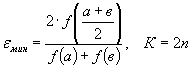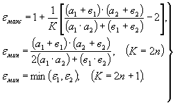 при К = 2n + 1 значение εмин определяется как εмин = min(ε1, ε2), причем