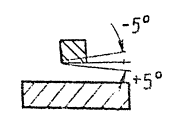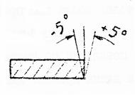 Примечание: Р - радиус кривизны; f - стрела прогиба; D - ширина листа; b - толщина металла; d1, d2 - ширина полки уголка, швеллера или двутавра; h - высота швеллера или двутавра; L - длина волны; d - диаметр трубы, круга При искривлениях проката из низкоуглеродистых сталей (содержание С не более 0,22%) по ГОСТ 380-88 и ГОСТ 1050-88 и низколегированных сталей по ГОСТ 19281-89, превышающих величины, указанные в табл.7 правка допускается только в горячем состоянии при общем или местном нагреве металла до температуры не ниже 1100оС с окончанием правки при температуре не ниже 700оС. Охлаждать металл после правки можно на воздухе при температуре не ниже 0оС. Температурный режим правки металла, обеспечивающий сохранение его свойств согласно требованиям соответствующих государственных стандартов, определяется технологической документацией, разработанной предприятием. 3.3.4. Правка проката направкой валиков сваркой не допускается. 3.3.5. После правки, зазор между натянутой струной и обушком уголка, полкой или стенкой швеллера и двутавра 1,001 (l - длина проката), но не более 10,0 мм. 3.3.6. Прокат с дефектами поверхности в виде расслоений, трещин, раскатания пузырей и чешуйчатости для изготовления металлоконструкций не допускается. 3.3.7. Вырезки заготовок элементов металлоконструкции из проката допускаются любым способом резки. 3.3.8. Кромки заготовок деталей после кислородной или дуговой (воздушной и кислородной) резки должны быть очищены от грата, шлака, брызг и наплывов металла и не иметь зарезов, в целом занимающих более 20% общей длины кромки. Длина одного зареза допускается не более 150 мм, глубина - не более 2 мм. Непрямолинейность реза более 1 мм и наплывы металла должны быть удалены и зачищены механическим способом. После дуговой (воздушной и кислородной) резки кромки деталей перед сваркой должны быть обработаны механическим способом на глубину 1,5 - 2 мм от наибольшей впадины реза. 3.3.9. Кромки заготовок деталей, отрезанных ножницами, не должны иметь заусениц и завалов, превышающих 1 мм, а также трещин и расслоений. 3.3.10. Кромки заготовок деталей из углеродистых и низколегированных сталей, не подлежащих сварке, в расчетных элементах, работающих на растяжение, а также в деталях, расположенных по направлению усилия в растянутой зоне изгибаемых элементов, после кислородной и дуговой резки (воздушной и кислородной) и после резки на ножницах должны быть подвергнуты механической обработке (строжке, фрезеровке и т.п.) Необходимость механической обработки кромок деталей должна указываться в чертежах или в технической документации. 3.3.11. Кромки под сварку могут быть обработаны любым из способов, обеспечивающих получение заданных в рабочих чертежах форм, размеров и шероховатостей поверхностей. Предельные отклонения размеров при обработке кромок под сварку: Плоскости кромок от прямого угла для стыковых соединений без скоса кромок (рис.1) ±5о, для тавровых соединений (рис.2) ±5о. для нахлесточных соединений (рис.3) ±6о;