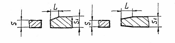 Подготовка кромок листов под сварку встык должно выполняться в этом случае так же, как и у листов одинаковой толщины. Если разность толщин кромок листов, свариваемых встык, превышает указанную величину S1-S при одностороннем превышении кромок или величину (S1-S) при двухстороннем превышении кромок, то на листе, имеющем большую толщину, должен быть сделан скос одной или двух сторон листа длиной L, равной 5 (S1-S) при одностороннем превышении кромок или 2,5 (S1-S) при двустороннем превышении толщины тонкого листа (рис.5).