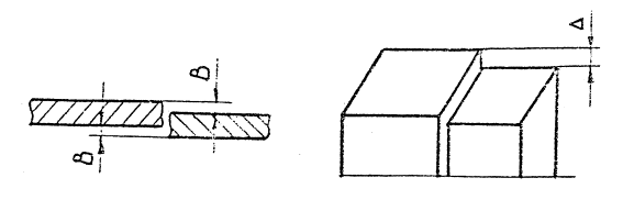 Рис.7 3.5. Сборка и подготовка металлоконструкций к сварке3.5.1. При сборке под сварку должна быть обеспечена точность сборки деталей в пределах размеров и допусков, установленных рабочими чертежами. Для обеспечения требуемой точности сборки следует применять специальные сборочно-сварочные кондукторы и приспособления, которые должны исключать возможность деформаций и не затруднять выполнение сварочных работ. 3.5.2. Приспособления, применяемые при сборке под сварку, должны периодически проверяться ОТК. Периодичность проверки устанавливается предприятием. 3.5.3. Принудительная пригонка деталей и элементов, нарушающая конструктивные формы, предусмотренные чертежом, запрещаются. 3.5.4. Свариваемые кромки и прилегающие к ним зоны металла шириной не менее 20 мм перед сборкой должны быть очищены от ржавчины, грязи, масла, влаги и др. На свариваемых кромках допускаются следы ржавчины и окалины после прокатки. При необходимости непосредственно перед сваркой производится дополнительная очистка мест сварки и удаление конденсационной влаги; элементы, покрытые льдом, должны быть обогреты и просушены; продукты очистки не должны оставаться в зазорах между собранными деталями; Зачистку можно производить любыми способами, обеспечивающими требуемое качество. 3.5.5. Детали, предназначенные для точечной сварки, в местах соединения с двух сторон должны быть очищены от окалины, коррозии и загрязнений. 3.5.6. При сборке конструкций под сварку детали устанавливают таким образом, чтобы обеспечить возможность выполнения сварных швов преимущественно в нижнем положении. 3.5.7. При сборке конструкций под сварку между свариваемыми деталями необходимо обеспечивать зазоры для всех типов сварных соединений; для ручной дуговой сварки - по ГОСТ 5264-80; для автоматической и полуавтоматической сварки под флюсом - по ГОСТ 6713-79; для сварки в углекислом газе и порошковой проволокой - по ГОСТ 14771-76; для сварки труб всеми видами сварки (ручной дуговой, полуавтоматической в углекислом газе, автоматической под слоем флюса и газовой) - по ГОСТ 16037-80; для ручной дуговой сварки под острыми и тупыми углами - по ГОСТ 11534-75. 3.5.8. Местные повышенные зазоры должны быть устранены до начала общей сварки соединения. Если устранить зазоры поджатием деталей невозможно, то разрешается производить наплавку Наплавку разрешается производить при длине зазора не более 10% общей длины шва и ширине не более 0,6 наименьшей толщины свариваемых деталей. 3.5.9. При сборке деталей под сварку допускаются следующие отклонения от проектного расположения деталей: а) в стыковых соединениях смещение свариваемых кромок относительно друг друга при толщине стыкуемых деталей не более 4 мм - до 0,5 мм; при толщине 4…10мм; при толщине свыше 10 мм - до 0,1 толщины стыкуемых деталей, но не более 3 мм (рис.8);