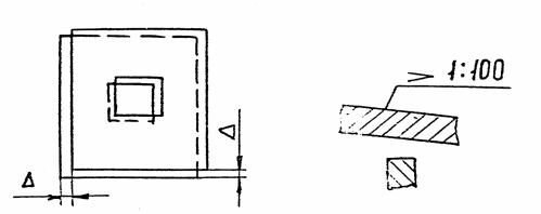 уступ кромок в плоскостях соединения для полок элементов и других свободных по ширине деталей не более 3 мм для деталей шириной до 400 мм и не более 4 мм для деталей шириной более 400 мм (рис.9); уступ кромок в соединениях замкнутого контура не более 2 мм по всему периметру (рис.10); б) в тавровых соединениях отклонение полки от заданного по чертежу положению не более 1:100 (рис.11).
