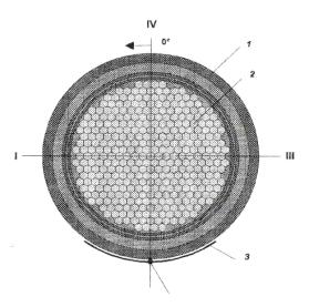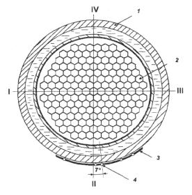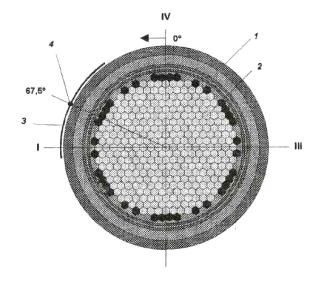 Е - энергия нейтронов, МэВ F - интегральный по энергии флюенс нейтронов, нейтр./см2 Р - уровень доверительной вероятности Термины и определения*Детектор-монитор - нейтронно-активационный детектор, облучаемый совместно с другими детекторами или наборами детекторов, результаты измерений которого используются для приведения результатов измерений разных детекторов к одинаковым условиям облучения по пространственной переменной (например, для учета пространственной градиента поля быстрых нейтронов). Детекторы флюенса нейтронов - нейтронно-активационные детекторы, которые облучаются длительное время (например, в течение кампании работы реактора) и период полураспада продукта реакции которых сравним с временем облучения. История мощности реактора - фиксируемое во времени изменение полной тепловой мощности реактора относительно номинального значения. Нейтронный контроль - определение отклика детекторов флюенса нейтронов на основе измерений их активности и последующая расчетно-экспериментальная оценка интегральных по времени характеристик поля нейтронов (флюенса, скорости накопления флюенса). Отклик детектора - функционально зависимая от характеристик поля нейтронов характеристика облученного детектора (например, число реакций за время облучения или средняя за время облучения скорость реакции под действием нейтронов). Скорость накопления флюенса быстрых нейтронов Ф - средняя за время накопления флюенса быстрых нейтронов (например, время кампании или облучения) ППН, приведенная к номинальному уровню тепловой мощности реактора. * - В разделе не приведены термины и определения, имеющие общетехническое значение и определенные в ГОСТах или в других нормативных документах. 1. Общие положения1.1. Настоящее руководство по безопасности "Методика нейтронного контроля на внешней поверхности корпусов водо-водяных энергетических реакторов АЭС" (далее - РБ) разработано с целью реализации требований Норм расчета на прочность оборудования и трубопроводов атомных энергетических установок (ПНАЭ Г-7-002-86), Правил устройства и безопасной эксплуатации оборудования и трубопроводов атомных энергетических установок (ПНАЭ Г-7-008-89). 1.2. РБ содержит методику нейтронного контроля, предназначенную для экспериментальной проверки расчетных методов, используемых для определения прогнозных данных о флюенсе быстрых нейтронов в критических точках корпусов реакторов типа ВВЭР. 1.3. РБ определяет порядок и методические условия проведения измерений активности и отклика детекторов флюенса нейтронов, а также методические условия для расчетно-экспериментальной оценки флюенса, скорости накопления флюенса и спектральных характеристик поля нейтронов с использованием нейтронно-активационных детекторов, устанавливаемых на внешней поверхности корпусов ВВЭР действующих АЭС. Контролируемый энергетический диапазон нейтронов определяется его значимостью с точки зрения радиационного повреждения стали корпуса реактора и сравнения с расчетными результатами. 1.4. РБ применимо к действующим реакторам АЭС типа ВВЭР-440 и ВВЭР-1000. 1.5. РБ может быть использовано для обоснования радиационной нагрузки корпуса реактора ВВЭР в целях проверки обоснованности заявленного срока службы. 2. Основные принципы организации облучения детекторов флюенса нейтронов на в