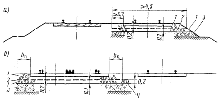 площадки земляного полотна из супесей и суглинков с границей текучести wL < 0,3 составляет по оси пути менее Покрытие укладывают по всей ширине земляного полотна поверху. На двухпутных участках при отсутствии деформаций на соседнем пути можно устраивать покрытие только на одном пути.