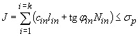 cin, φin - соответственно удельное сцепление и угол внутреннего трения между нетканым материалом и нижележащим грунтом; Nin - нормальная к поверхности откоса составляющая силы тяжести отсыпанного сверху слоя дренирующего грунта: