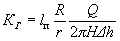 где Е - модуль упругости материала, кгс/см2; р - нагрузка на поверхность мембраны, кгс/см2, b, t - геометрические размеры мембраны, см. Значение σxc = σyc, полученное опытным путем для конкретного вида материала, принимают в качестве предельного при расчетах. Вертикальную водопроницаемость КВ нетканого материала можно определять в серийных приборах для песчаных и глинистых грунтов (например, трубка СПЕЦГЕО, трубка Каменского, прибор Ф-1М), размещая в них материал в несколько слоев (в стопе). Способ применим как для двухслойной (нетканый материал и грунт), так и для однослойной (нетканый материал) среды. Горизонтальную водопроницаемость (вдоль слоя материала) КГ определяют в специальном устройстве, состоящем из металлического стакана с перфорированными стенками. Высота перфорированной части соответствует высоте слоя (стопы) материала. Сверху на материал укладывают поршень с отверстием определенного радиуса в центре. Через это отверстие вода под напором поступает в материал, фильтрация ее осуществляется только в горизонтальном направлении. Коэффициент фильтрации вдоль слоя материала
