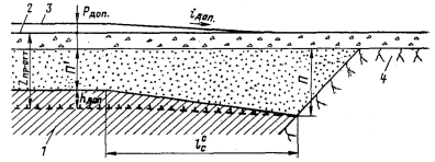 где Qmax - максимальный (летний) расход дренажа, м3/с; Кз - коэффициент фильтрации заполнителя траншеи, м/с; i -уклон дна траншеи.