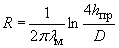 Примеры расчета. 1. Выполним тепловые расчеты первого (зимнего) критического периода. Определим по формуле (П.1) термическое сопротивление трубопровода отводной линии. Принимаем λм=2 ккал/(м·ч·°С); h=2 м; D=0,l м. Значения остальных величин ясны из приводимых ниже выражений.