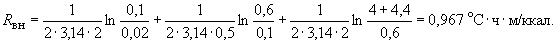 где Rв - термическое сопротивление трубопровода на участке выпуска;