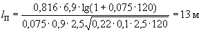 После подстановки имеющихся расчетных данных добиваемся соблюдения равенства (П.7), изменяя значение l. При l=10,5 м имеем: