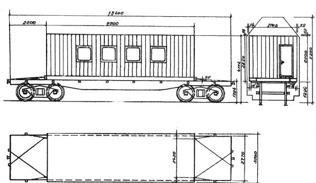 2770×13300 мм) с базой вагона 2.2.4. При транспортировании зданий на платформах торцевые