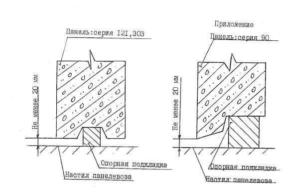 Рис. 1. Опирание панелей с противодождевым выступом при перевозке.
