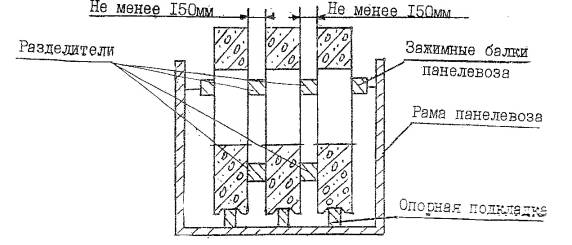 Рис. 2 Перевозка панелей с выступами (подоконниками сливами и т.п.) с использованием разделителей
