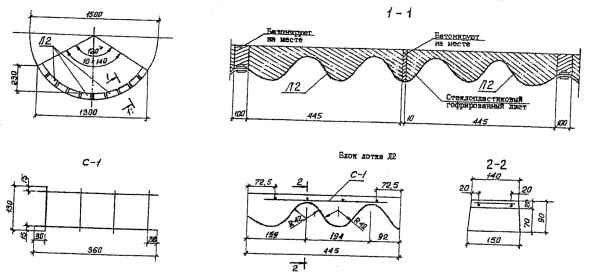 Рис.6. Схема расположения блоков лотка Чертеж заимствован из рабочего проекта Ленгипротрансмоста «Трубы водопропускные из гофрированного стеклопластика для железных и автомобильных дорог», лист 653 Р4 010 Бетон класса В40, F300, Vед. =0,0038 м3 Спецификация блоков на секцию длиной 1х1000 мм