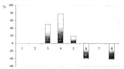 Стокоформирующие комплексы Рис. П3.1. Изменение площадей стокоформирующих комплексов (в % от первоначальных) за период 1996-2004 гг. Изменение площадей стокоформирующих комплексов за период 1996 - 2004 гг: