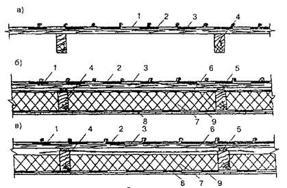 материалов должны располагаться параллельно коньку с нахлестом не менее 6.3 Над холодным чердаком выполняют вентилируемую кровлю, состоящую из уложенного на стропила основания, подстилающего слоя и покрытия из медных лент или листов (рисунок 1, а). 6.4 В утепленной совмещенной кровле (рисунок 1, б, в) эффективная теплоизоляция должна быть защищена: слоем пароизоляции; противоветровым слоем, предотвращающим вызываемую ветром фильтрацию воздуха через утеплитель. Рулонные материалы при устройстве слоя