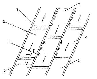 1 - скользящий кляммер; 2 - медные листы; 3 - одиночный лежащий фальц со сплошным кляммером Рисунок 10 - Расположение кровельных листов на основании и места их крепления