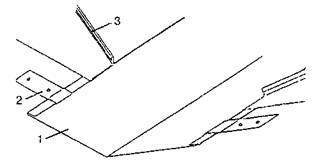 1 - картина разжелобка; 2 - медный кляммер; 3 - стоячий фальц с квадратными кромками Рисунок 21 - Разжелобок с одиночным закрепленным лежачим фальцем