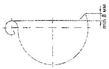 1 - картина разжелобка; 2 - медный кляммер; 3 - двойной стоячий фальц с квадратными кромками Рисунок 23 - Углубленный разжелобок 9 Устройство водостока9.1 Желоба9.1.1 Для устройства водостока применяют карнизные водосточные желоба полукруглого или коробчатого сечения. Желоба поставляют в комплекте с водосточной трубой и дополнительными элементами. Комплект можно также изготавливать в мастерских с соответствующим оборудованием. 9.1.2 Наиболее распространенным типом карнизного желоба является полукруглый желоб (рисунок 24). Полукруглое сечение обеспечивает благоприятные условия стока дождевой воды, наиболее удобно при изготовлении и обладает большей жесткостью по сравнению с коробчатыми. 9.1.3 Желоба коробчатого сечения (рисунок 25) для обеспечения хорошего стока устанавливают с уклоном.
