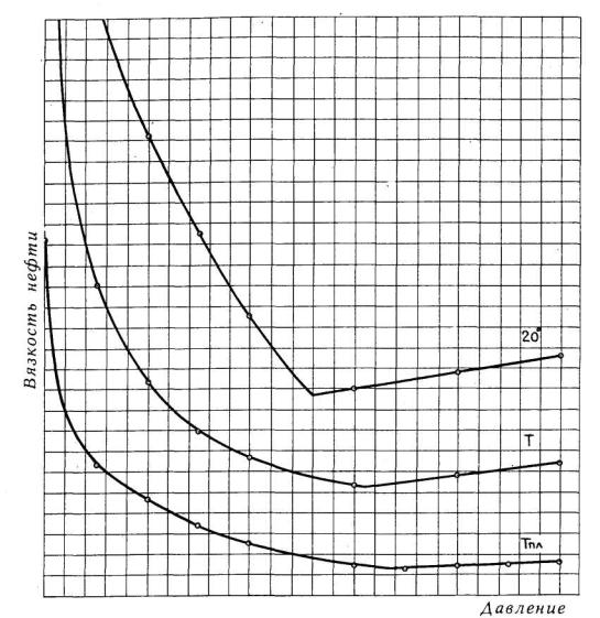 *) Определяется при необходимости Примечание. Допускается физико-химическую характеристику сепарированной нефти или отдельные параметры получать на основании исследования поверхностных образцов нефти или заимствовать из специальных исследований нефти данной скважины. В этом случае в пояснительной записке и в форме 7 технического отчета должна быть дана ссылка на использованный источник (п. 3.2.2.7) 2.1.4.4. Допускается при необходимости расширять комплексы Aс, А и Б дополнительными видами исследования, взятыми из комплекса В. Исключение из комплексов обязательных видов исследования или отдельных параметров должно быть оговорено в пояснительной записке (п. 3.2.2.3) технического отчета с указанием обоснованных причин исключения. 2.2. Термобарические условия исследования. 2.2.1. Термобарические условия исследования должны быть заданы, исходя из конкретных условий эксплуатации данного объекта. В иных случаях следует пользоваться рекомендациями, изложенными в пп. 2.2.2-2.2.20. 2.2.2. Параметры пластовой нефти должны быть измерены при пластовом давлении и пластовой температуре. 2.2.3. Исследования РVT - соотношений, дифференциальное и контактное разгазирование и определение вязкости, выполняемые по комплексам Б и В, помимо пластовой температуры, должны проводиться еще при 20 °С и промежуточной температуре. 2.2.4. Допускается контактное разгазирование проводить на ступенях, давления и температуры которых соответствуют условиям, имеющим место в стволе работающей скважины. 2.2.5. Установлен следующий ряд промежуточных температур: 30, 40, 50... и далее через 10 °С. 2.2.6. Промежуточная температура должна быть найдена, как средняя арифметическая двух температур - пластовой и 20 °С, округляемая до ближайшей в ряду (п. 2.2.5), или - по графику (приложение 7, рекомендуемое). Примечание. Допускается при необходимости проводить исследование при нескольких температурах, которые, в этом случае, не являются средними арифметическими величинами, а выбираются из ряда по п. 2.2.5. 2.2.7. При пластовых температурах ниже 55 °С, но не ниже 30 °С, измерения по п. 2.2.4 производят только при двух температурах: 20 °С и пластовой. 2.2.8. При пластовой температуре ниже 30 °С измерения по п. 2.2.4 проводят только при пластовой температуре. Если при подъеме по скважине нефть нагревается, то измерения проводят при двух температурах - пластовой и температуре на устье скважины, скорректированной с температурным рядом по 2.2.5. 2.2.9. При стандартной сепарации нефть, поступающая в сепаратор, и в самом сепараторе должна находиться при температуре 20 °С и давлении 1013,25 гПа (допускается при текущем атмосферном давлении). Примечание. Температура нефти в сосуде pvt монет быть как 20 °С, так и пластовая при условии, что давление нефти в подводящих к сепаратору коммуникациях не будет снижаться ниже давления насыщения, и при соблюдении требования настоящего пункта. 2.2.10. Исследования в области однофазного и двухфазного состояния нефти при измерении pvt-соотношений, дифференциальном и контактном разгазировании, а также при определении вязкости должны выполняться при значениях давления, обусловленных величиной пластового давления и давления насыщения данной нефти. 2.2.11. Исследования должны проводиться на установленных ступенях давления: для однофазной области число ступеней должно быть от 4 до 6, для двухфазной - от 5 до 10. Приме