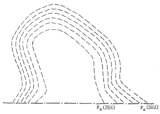 I - область двухфазного состояния нефти с перепадом давления Ps-Pз, II - область однофазного состояния нефти с перепадом давления Рк-Ps. 2. Если повысить забойное давление до величины, большей Ps, и извлечь из пласта весь объем двухфазной нефти, ограниченный изобарой ps, то к скважине подойдет представительная нефть. 3. Необходимое для этого время определяется соотношением: