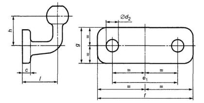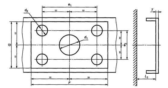 1.6.1 Размеры шаровых наконечников и тяговых кронштейнов с креплениями фланцевого типа класса А50-1 должны соответствовать предписаниям, приведенным на рисунке 3 и в таблице 6.1.