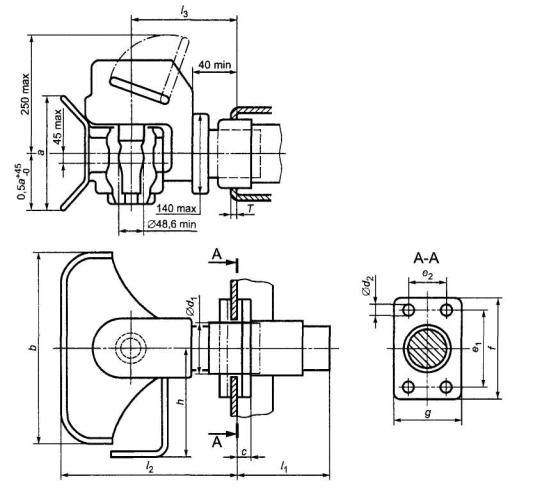 1.3.1 В случае съемных шаровых наконечников или их элементов, которые не крепятся болтами, например класса А50-Х, точка соединения и блокирующее приспособление должны быть рассчитаны на принудительное механическое запирание.