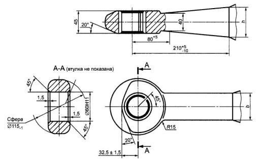 Рисунок 4 - Размеры стандартных фланцевых шаровых наконечников классов А50-2 - А50-5