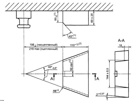 1.3.2 В случае съемного шарового наконечника или его элемента, который может быть испытан отдельно для использования с разнообразными тяговыми кронштейнами при различных видах эксплуатации ТС, например класса ASO-X, свободное пространство, предусмотренное для установки шарового наконечника на тяговом кронштейне, должно соответствовать предписаниям, приведенным на рисунке 25 приложения 8.