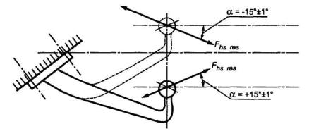 2.1.1.2 в случае сцепных устройств и их элементов, представленных на испытания независимым предприятием-изготовителем и предназначенных для установки в качестве запасных деталей, - приблизительно в положении сидящего человека;