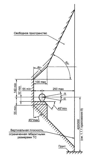 Это пространство должно быть обеспечено также при конкретных минимальных углах сцепки и расцепки, указанных в 1.3.4.